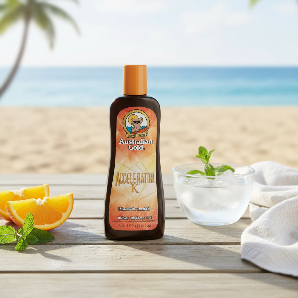Accelerator K de Australian Gold ayuda a potenciar el aspecto bronceado y aportar luminosidad, favoreciendo un acabado más uniforme y cuidado.
